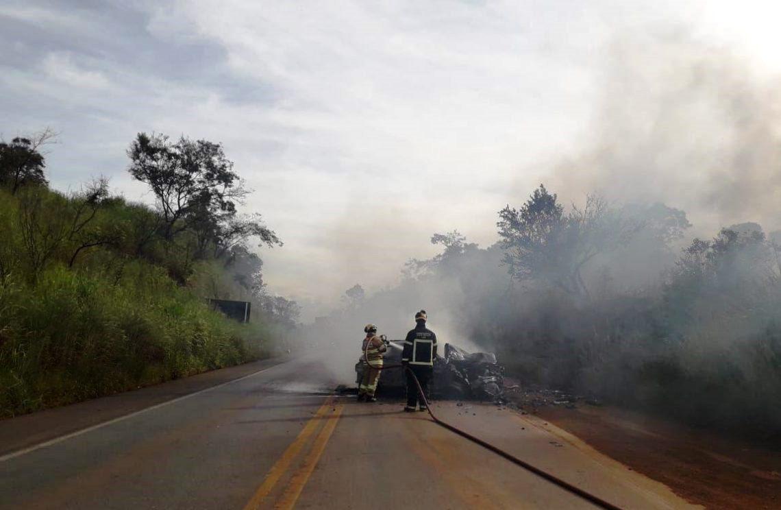 Quando os bombeiros chegaram ao local, o carro já tinha sido praticamente consumido pelo fogo, mas o casal havia sido retirado do veículo por populares que presenciaram o acidente.