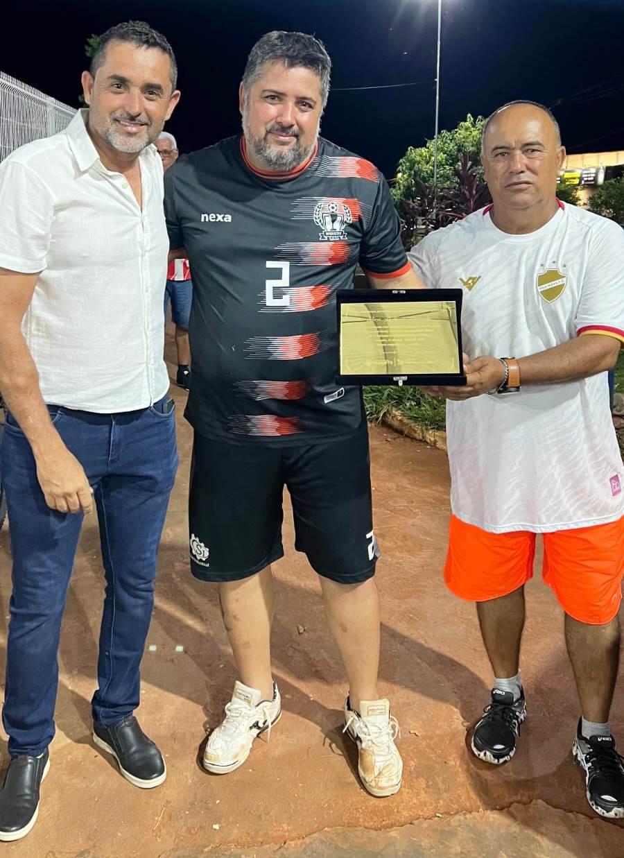 Secretário Isaul , ex-goleiro Alves e Donizete em homenagem a atleta