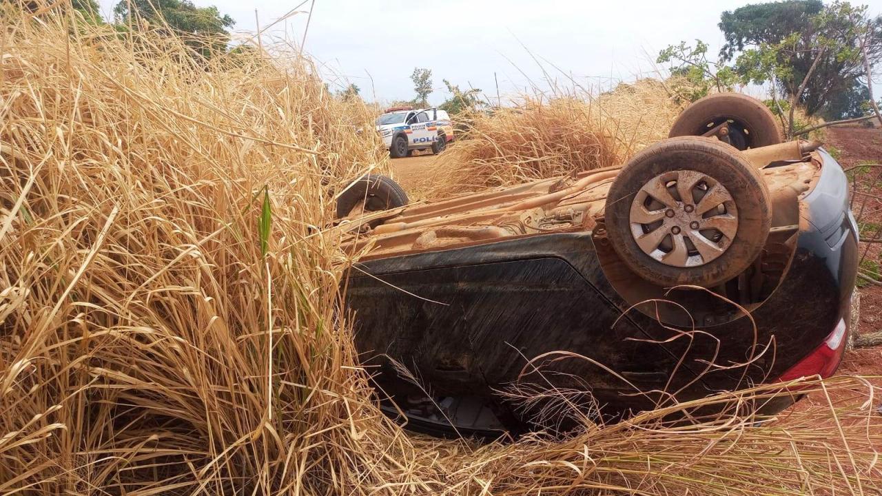 Autor abandonou o carro capotado e fugiu