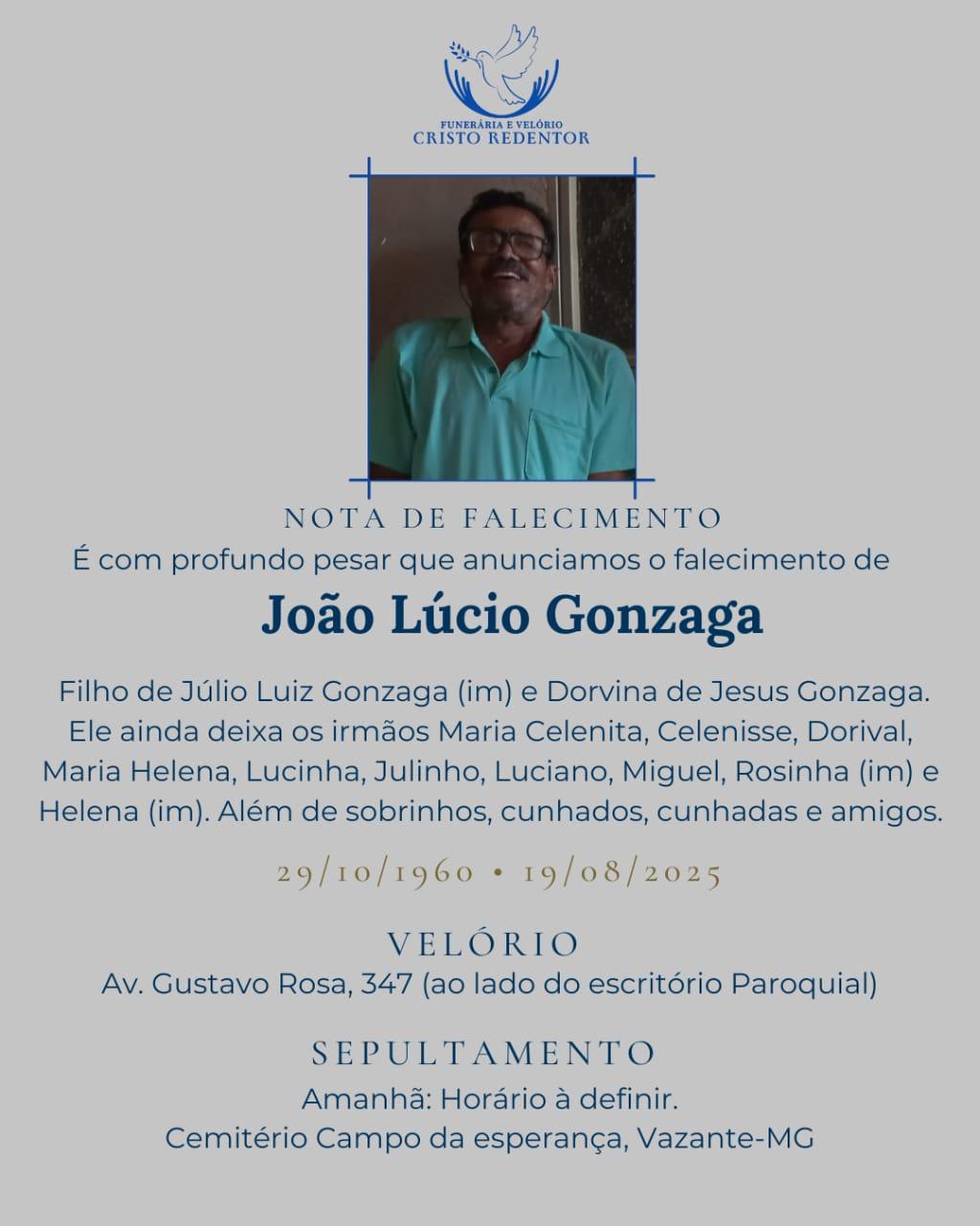 LAMENTAMOS COMUNICAR O FALECIMENTO DE JOÃO LÚCIO GONZAGA