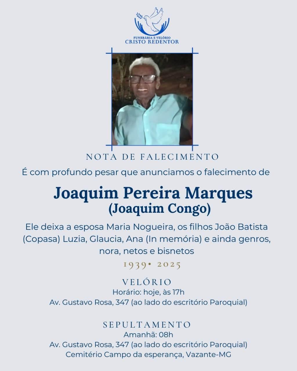 LAMENTAMOS COMUNICAR O FALECIMENTO DE JOAQUIM PEREIRA MARQUES