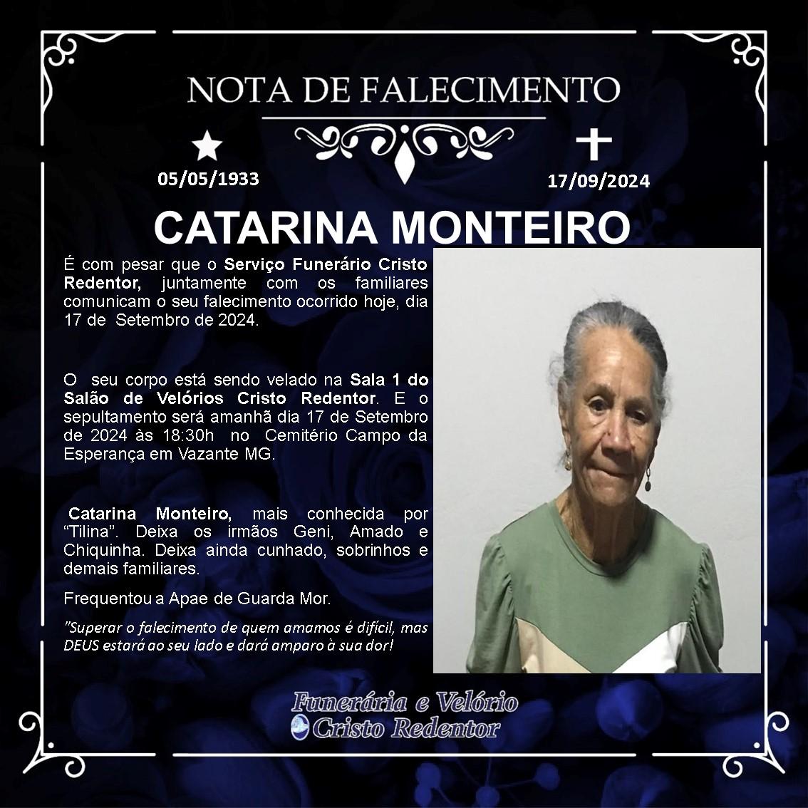 LAMENTAMOS INFORMAR O FALECIMENTO DE CATARINA MONTEIRO