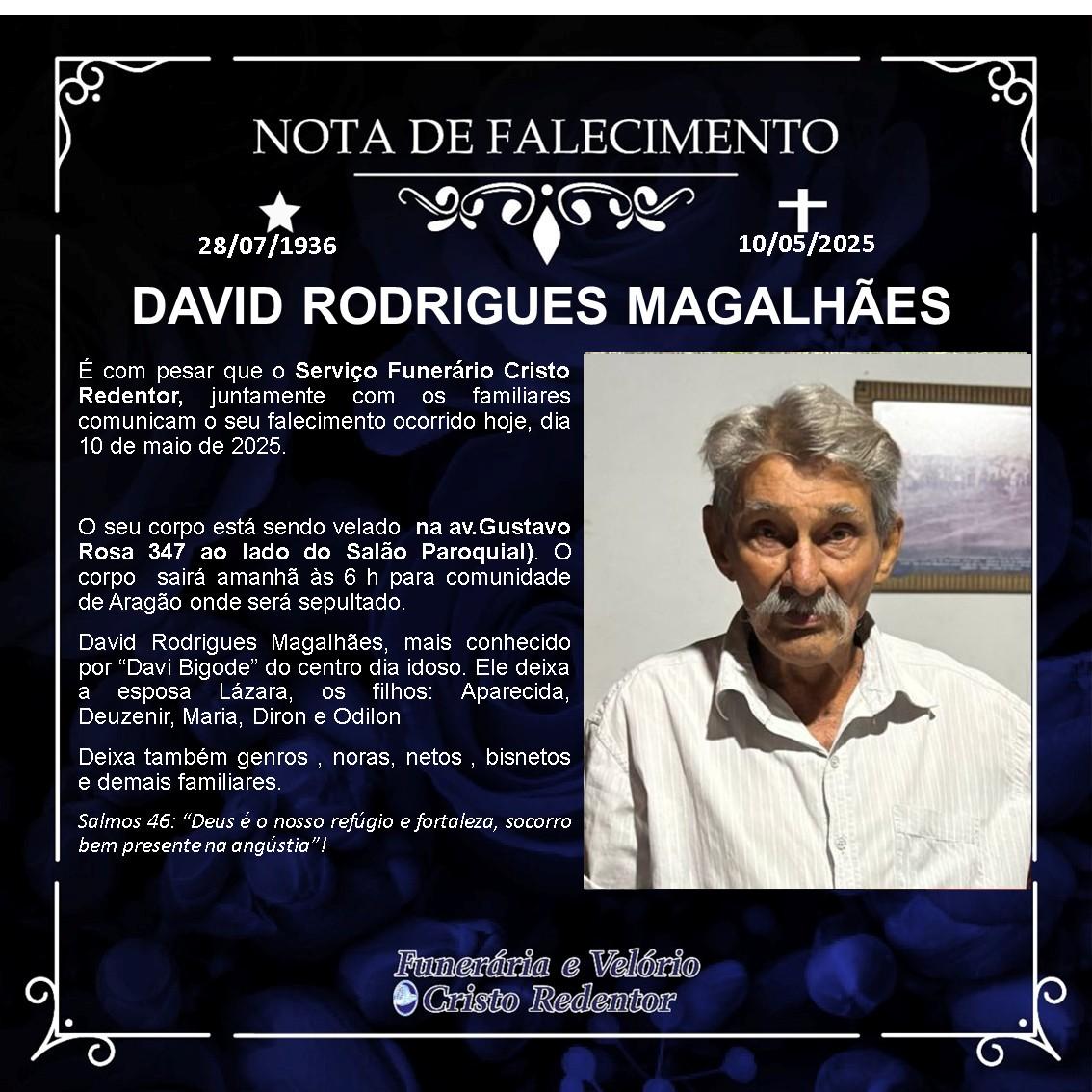 LAMENTAMOS INFORMAR O FALECIMENTO DE DAVID RODRIGUES MAGALHÃES