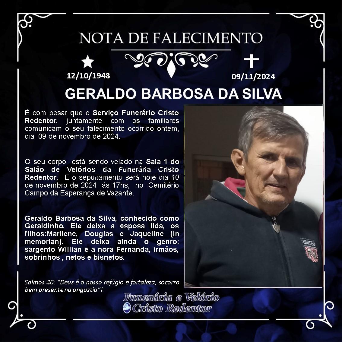 LAMENTAMOS INFORMAR O FALECIMENTO DE GERALDO BARBOSA DA SILVA