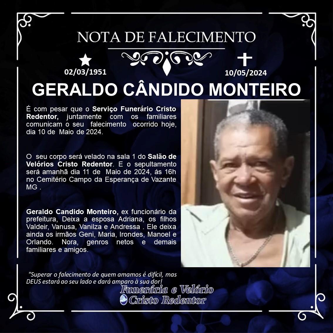 LAMENTAMOS INFORMAR O FALECIMENTO DE GERALDO CÂNDIDO MONTEIRO