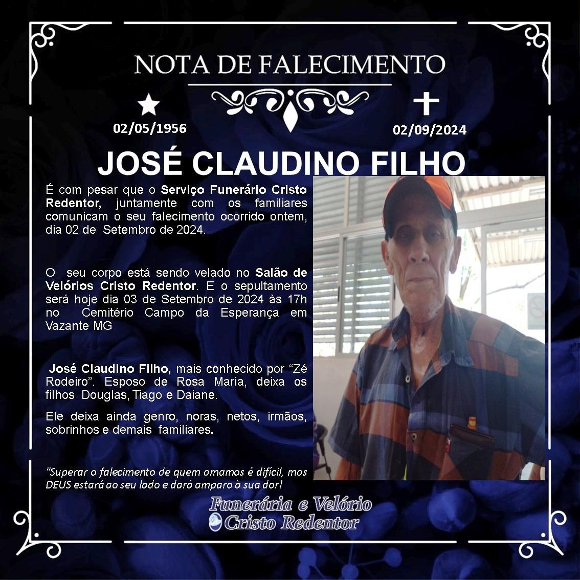 LAMENTAMOS INFORMAR O FALECIMENTO DE JOSÉ CLAUDINO FILHO