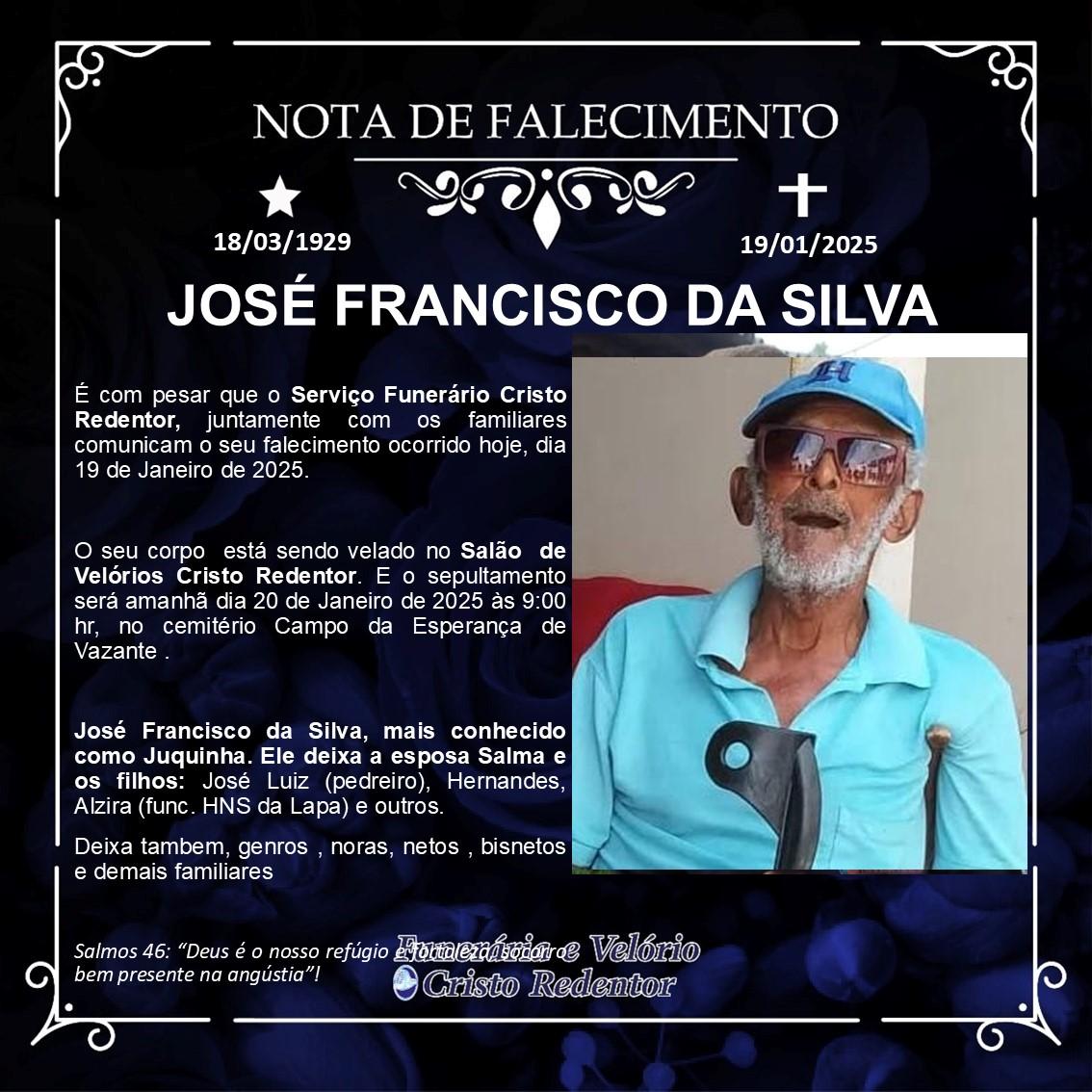 LAMENTAMOS INFORMAR O FALECIMENTO DE JOSÉ FRANCISCO DA SILVA