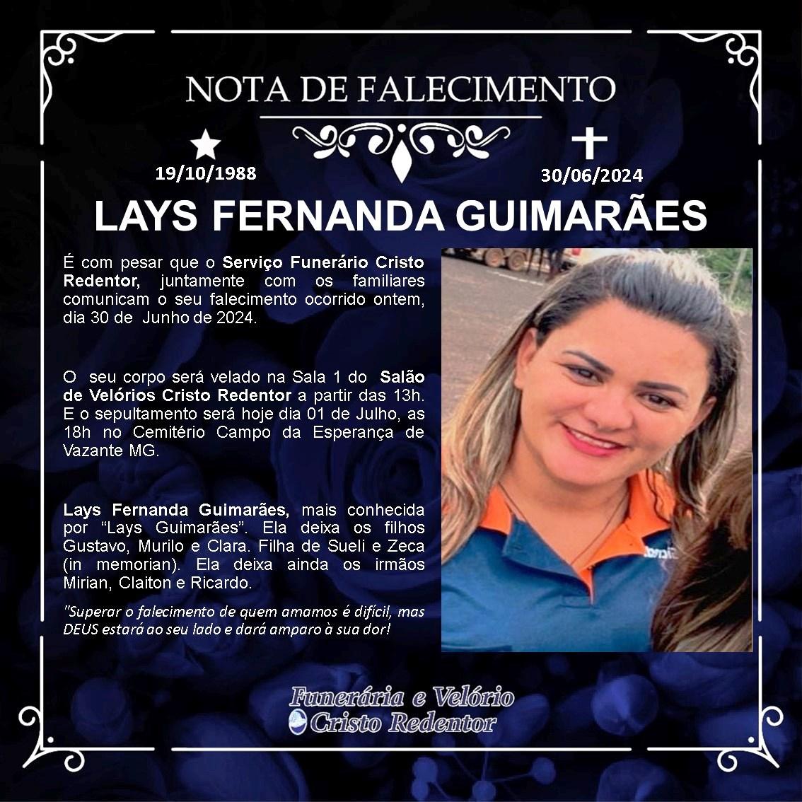 LAMENTAMOS INFORMAR O FALECIMENTO DE LAYS FERNANDA GUIMARÃES