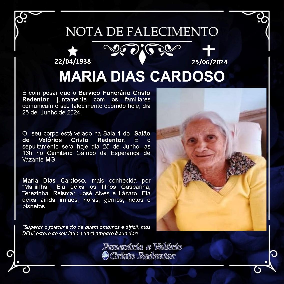 LAMENTAMOS INFORMAR O FALECIMENTO DE MARIA DIAS CARDOSO