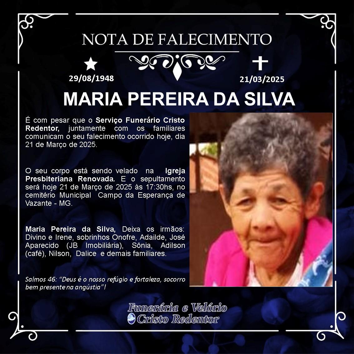 LAMENTAMOS INFORMAR O FALECIMENTO DE MARIA PEREIRA DA SILVA