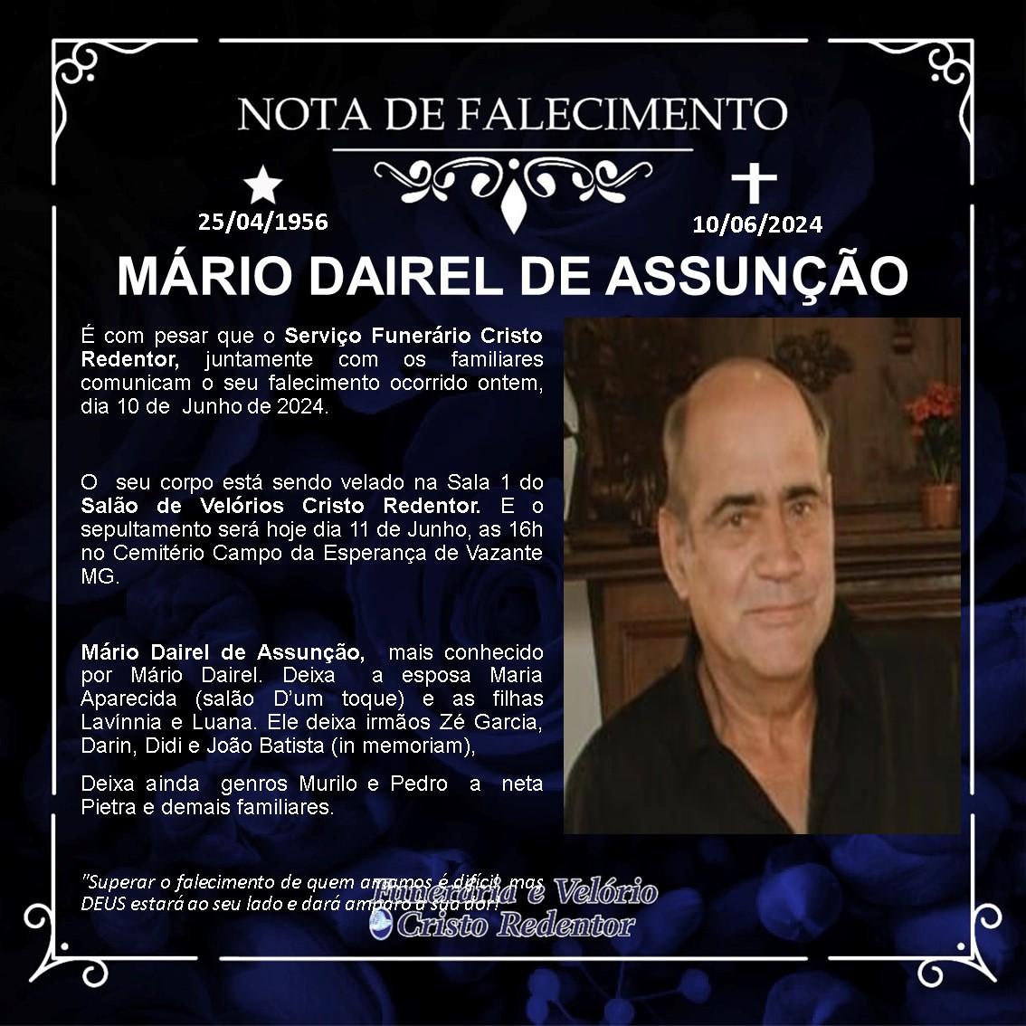 LAMENTAMOS INFORMAR O FALECIMENTO DE MÁRIO DAIREL DE ASSUNÇÃO