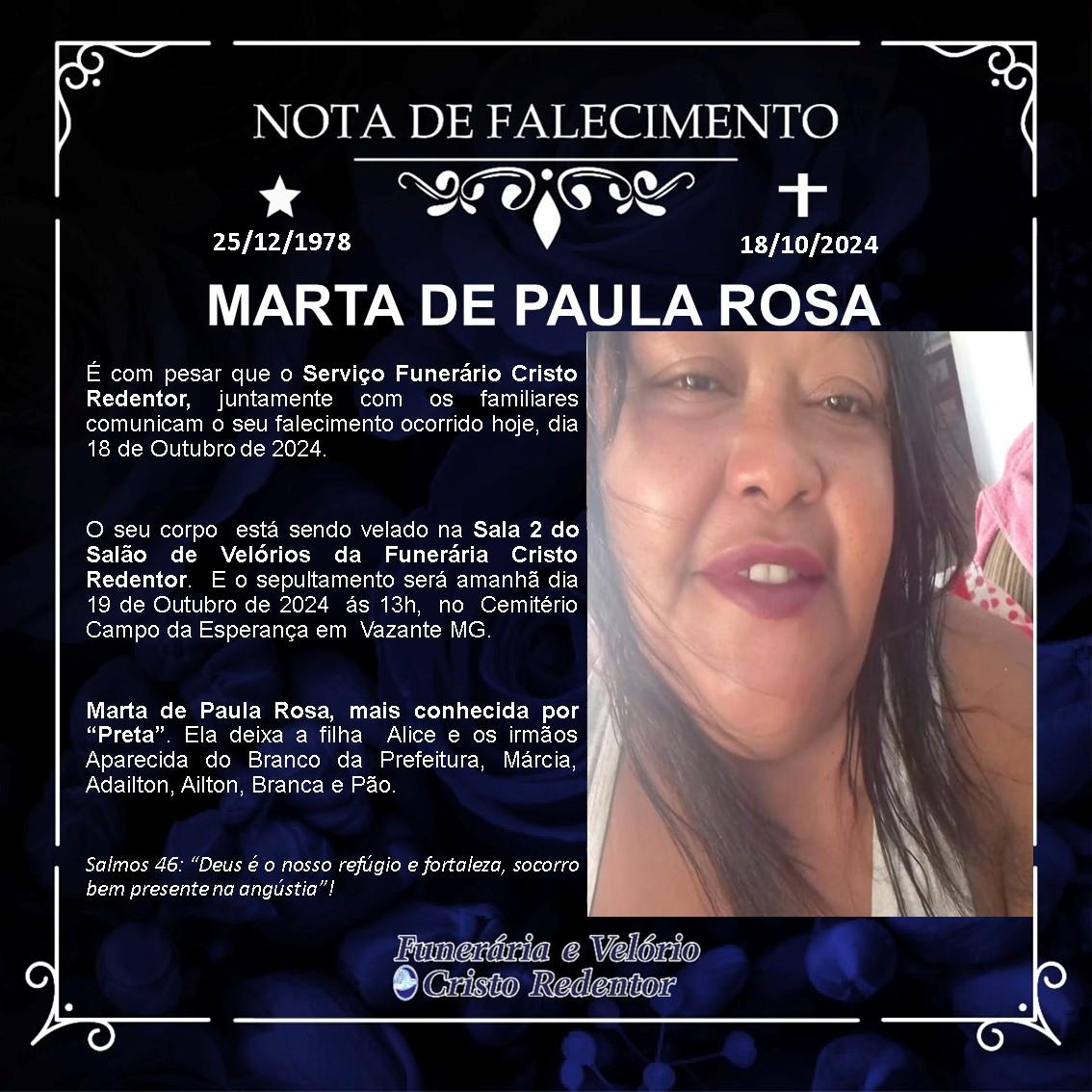 LAMENTAMOS INFORMAR O FALECIMENTO DE MARTA DE PAULA ROSA