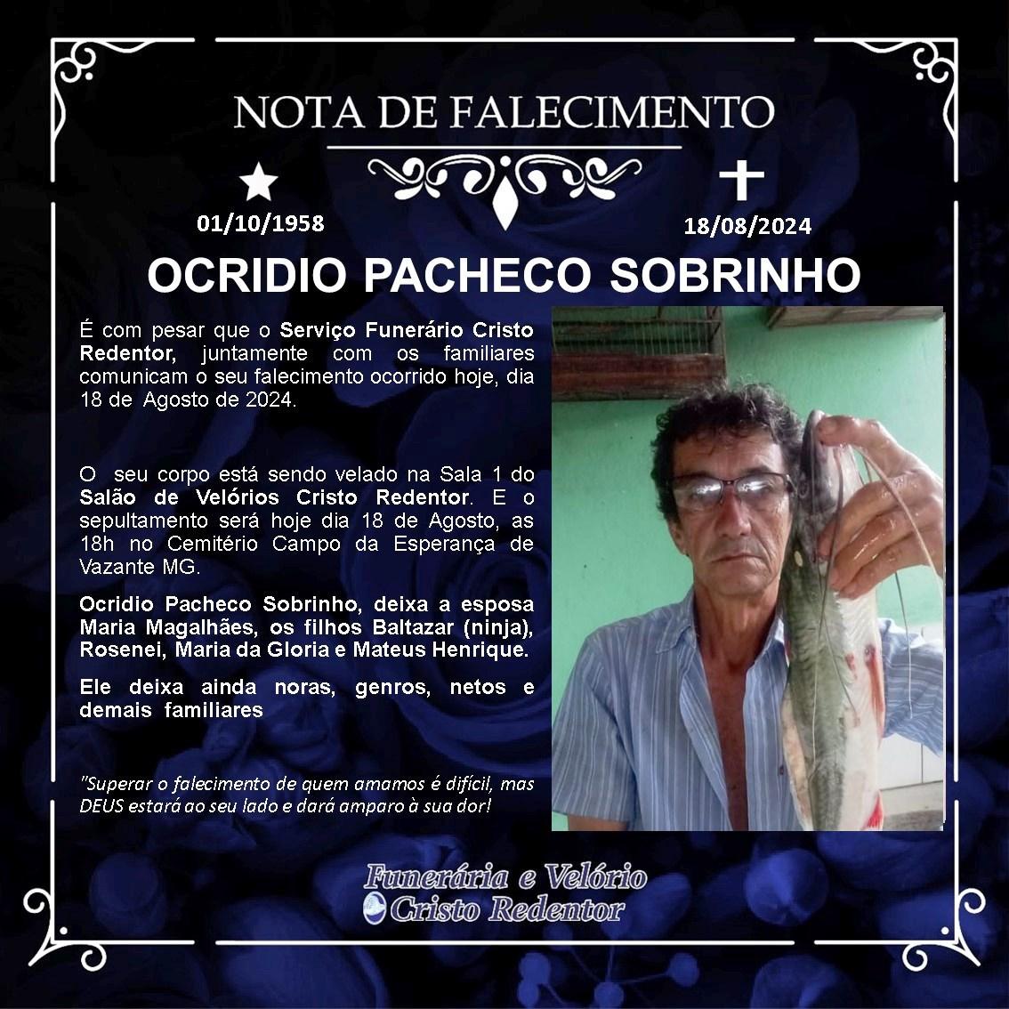 LAMENTAMOS INFORMAR O FALECIMENTO DE OCRÍDIO PACHECO SOBRINHO