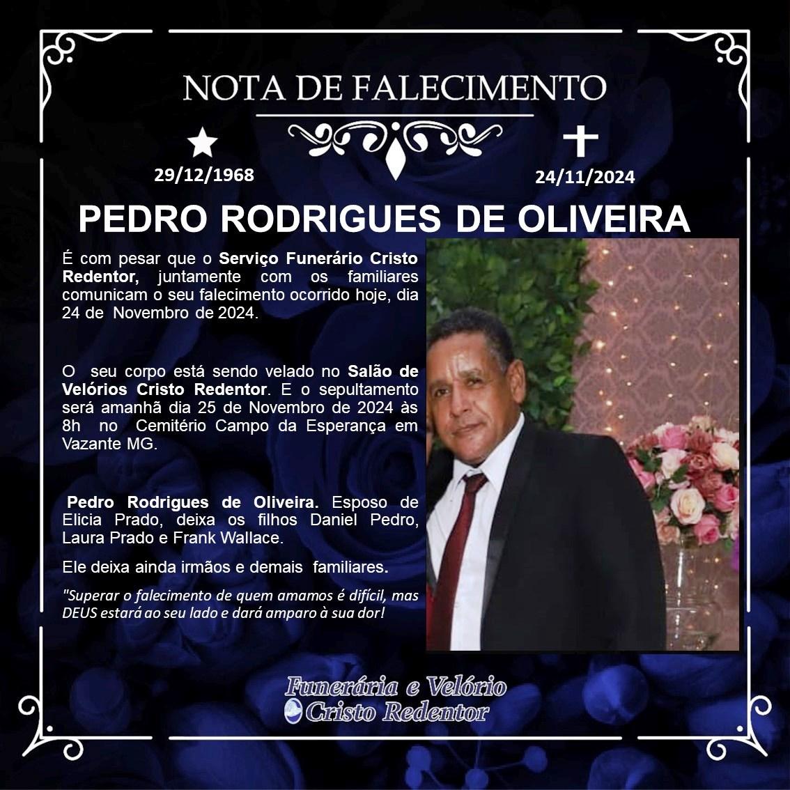 LAMENTAMOS INFORMAR O FALECIMENTO DE PEDRO RODRIGUES DE OLIVEIRA