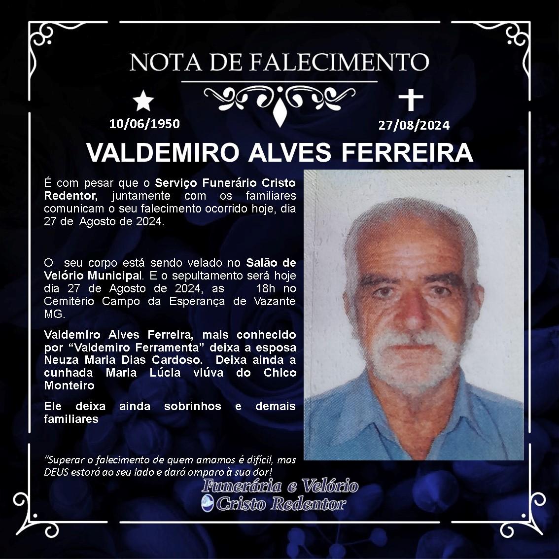 LAMENTAMOS INFORMAR O FALECIMENTO DE VALDEMIRO ALVES FERREIRA