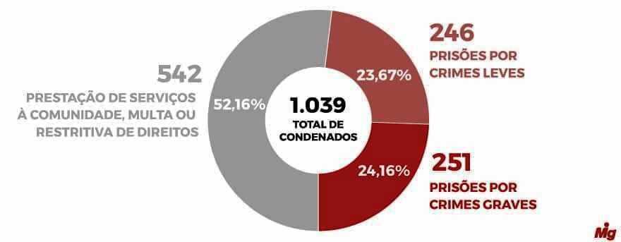 O número de beneficiados pelas punições alternativas representa mais da metade do total de condenados: 52%. Confira os dados abaixo: