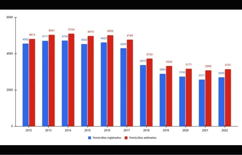Em Minas Gerais, o número de homicídios estimado no período (2012 a 2022) foi de 46.186, o equivalente a mais de 10% que o registrado oficialmente.