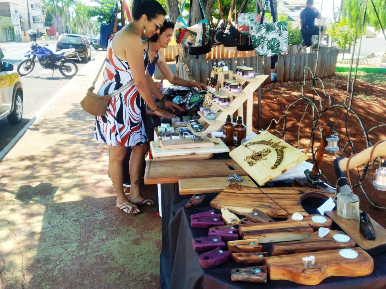 Na tenda, instalada na Praça do Centro Cultural, as pessoas podem comprar bolsas em costuras criativas, sabonetes veganos e cosmética natural com extratos botânicos e peças artesanais em madeira, como luminárias rústicas, tábuas de cortes e servir, abridores de garrafas magnéticos de mão e parede, entre outros itens.