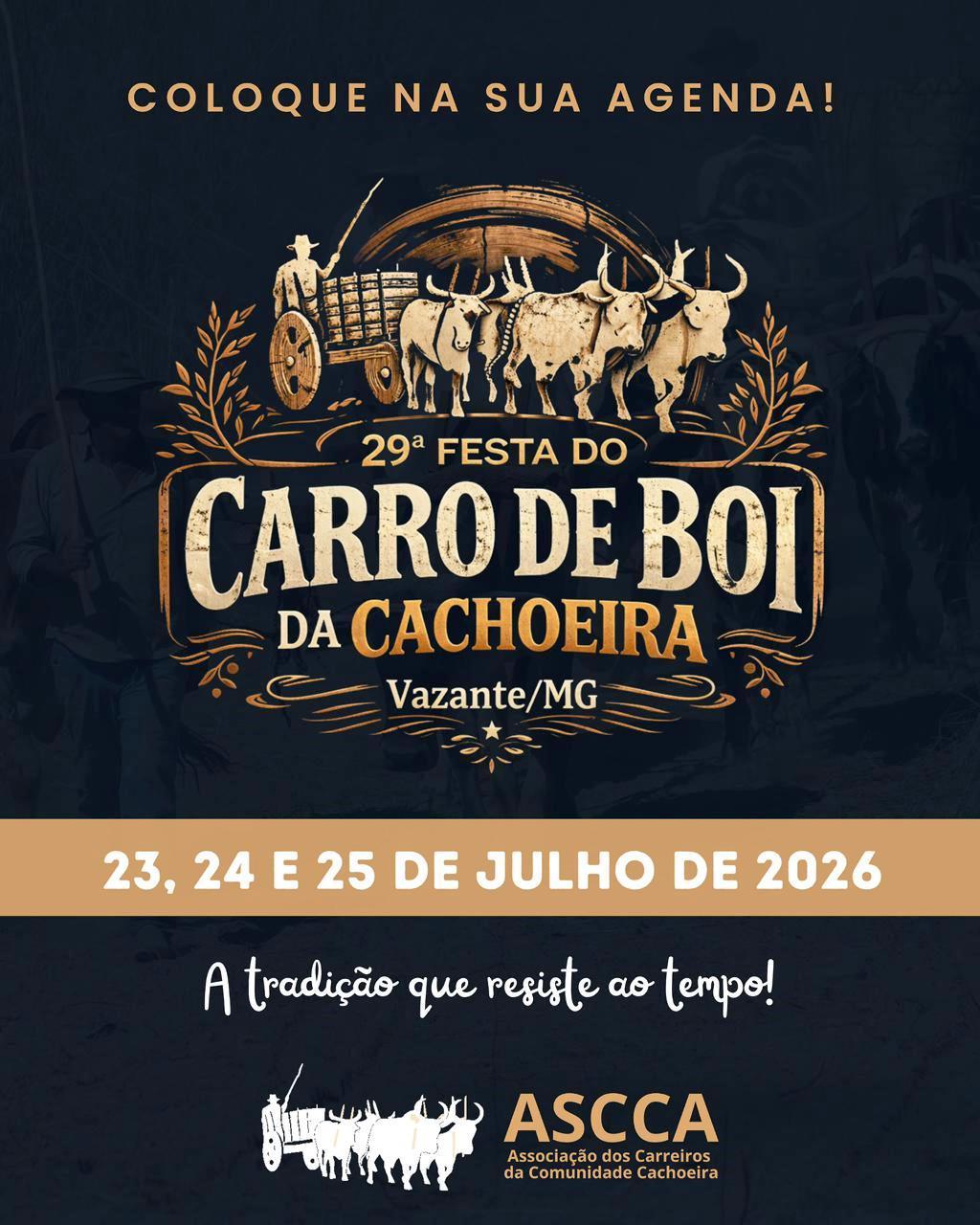 A nova diretoria assume o comando da associação com o compromisso de preservar, valorizar e melhorar ainda mais a Festa do Carro de Boi da Cachoeira, uma das principais tradições da cultura rural de Vazante, cuja 29ª edição está programada para os dias 23,24 e 25 de julho próximo.