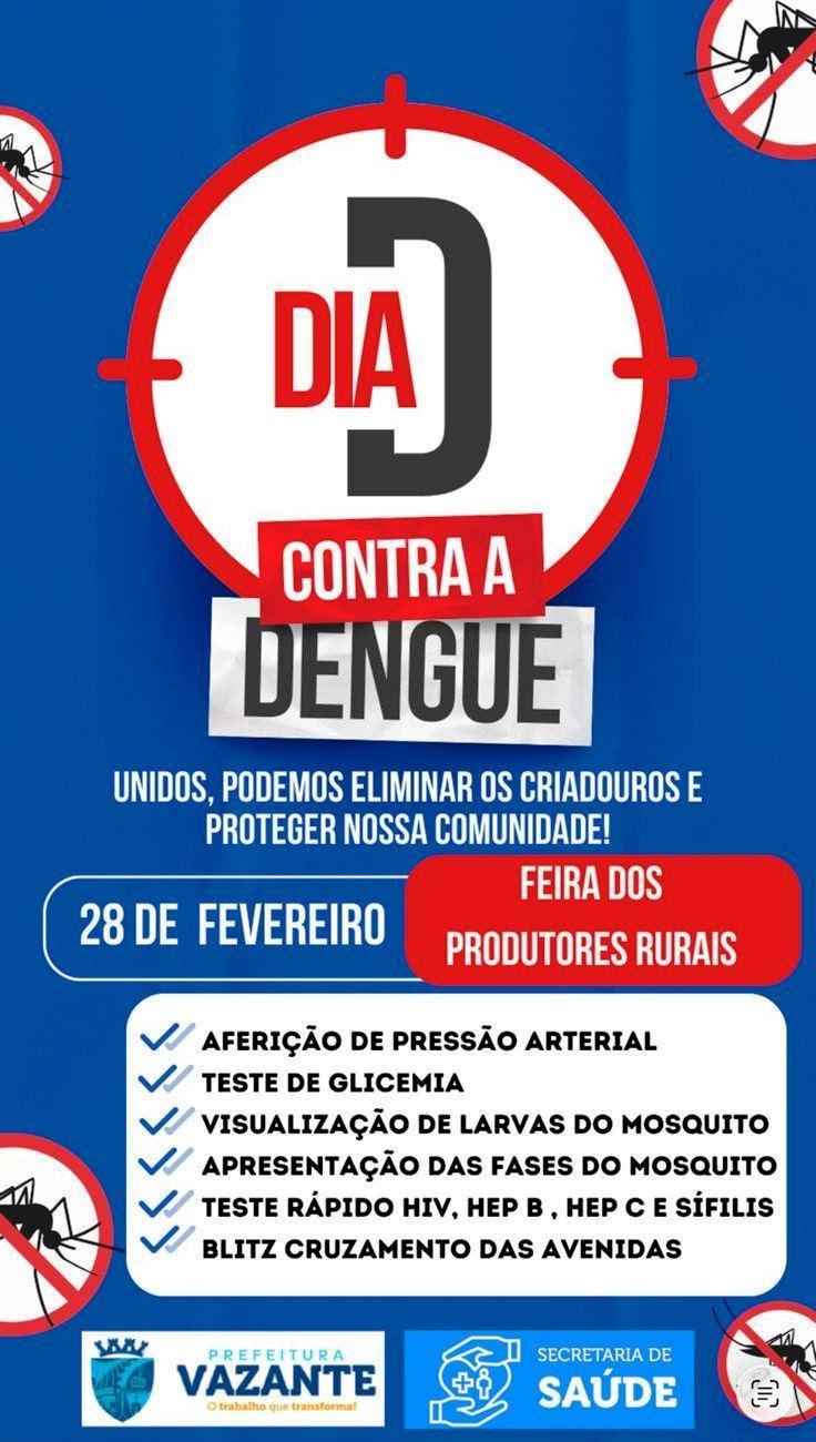 Em Vazante, a mobilização será realizada na Feira dos Produtores Rurais, instalada no Centro Municipal de Eventos, com visualização de larvas do mosquito transmissor da dengue, apresentação das fases de evolução do inseto e procedimentos de Atenção Primária à Saúde (APS).